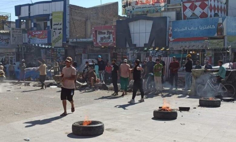 أقدم متظاهرون غاضبون من أصحاب البسطات في شارع النيل وسط الناصرية على حرق الإطارات، أمس السبت، مطالبين بالعدول عن قرار إزالة البسطات بعد إحالة الشارع إلى مشروع تأهيل وتوسعة.
