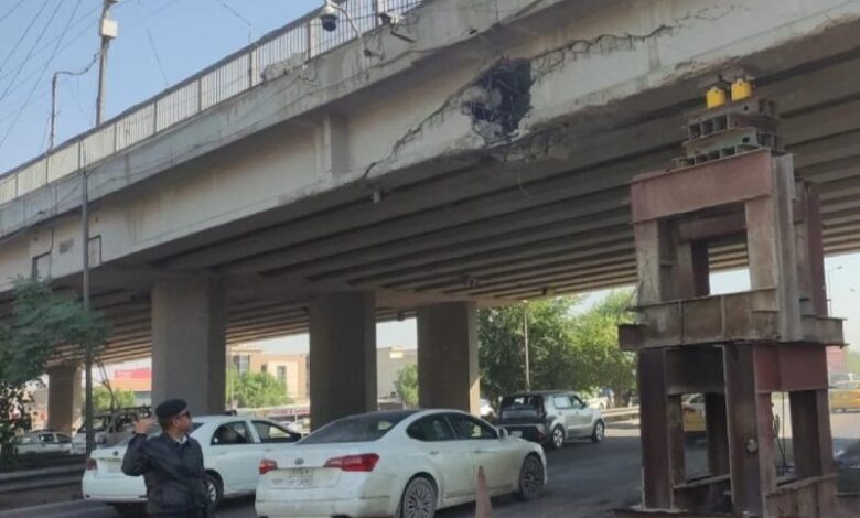 وقال الأهالي: ان “من يمرّ بزحام طريق القادمين من جسر سريع محمد القاسم إلى ساحة الطيران سيلاحظ وجود تشققات وتصدعات في الجسر، وهو ما يمكن ان يتسبب بعد مدة بانهياره، لكون التصدعات ناتجة عن الرطوبة التي تغطي الأجزاء الرئيسة له بشكل واضح وجلي في هذه المنطقة”.