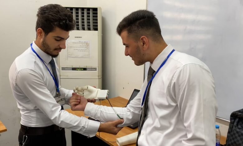 أما الطالب محمد علي، فيؤكد: “انتجنا الأطراف الصناعية من مواد صديقة للبيئة، وهي فكرة بدأت من مرحلة معارك “داعش” حيث برزت الحاجة للأطراف الصناعية لضحايا الحرب، لافتا الى ان المشروع يحاكي اليد الطبيعية، ويستطيع تحمل 20 كغم، وهو مساوٍ للطرف السليم ولا يتحسس من الوزن الزائد، وتكون فوقه طبقة من “الجلد” وتتم برمجته لتكون حركته طبيعية”.