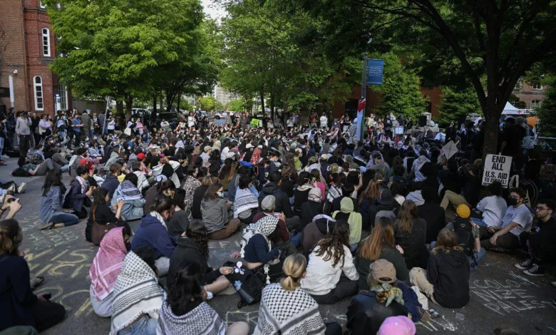 وفي العاصمة الأميركية، شهد الاعتصام الطلابي المفتوح في جامعة جورج واشنطن مشاركة واسعة مع انضمام 7 جامعات أخرى إليه من واشنطن وفرجينيا وميريلاند.