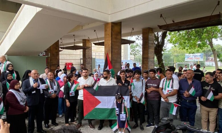 واضاف أن “المشاركين رفعوا أعلام فلسطينية، ورددوا عبارات مناهضة للعدو الصهيوني ولجرائمه المروعة التي يرتكبها ضد ابناء غزة”.