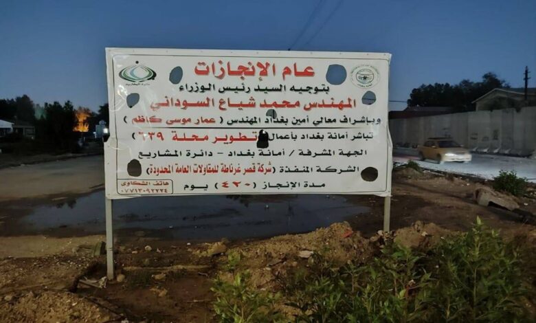 وأضاف:”على الرغم من وجود لافتة تشير إلى قرب مباشرة أمانة بغداد بأعمال تطوير محلة 639، ضمن “عام الإنجازات” كما هو مثبت عليها، إلا أن هذا الحي لم تبدأ فيه الحملة المرتقبة التي انتظرها الأهالي كثيراً، لدرجة أن موجة الأمطار الأخيرة بينت ما يعانيه حي الخضراء من حالة متردية لشوارعها وأزقتها المليئة بالحفر والتخسفات”.