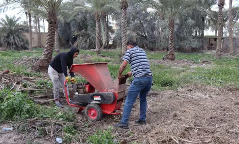 شاب يصنع السماد العضوي من سعف النخيل