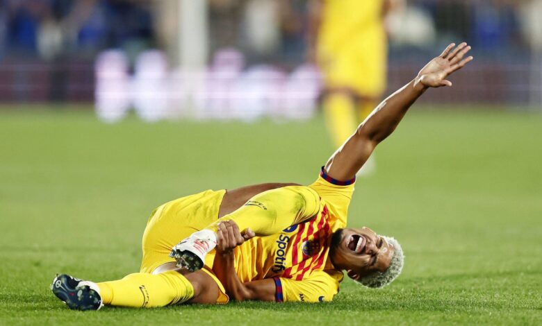 يغيب المدافع رونالد أراوخو، بسبب شعوره بآلام، عن مباراة فريقه برشلونة أمام ألميريا في الدوري الإسباني اليوم، لينضم إلى لاعب الوسط إلكاي جوندوجان الموقوف.