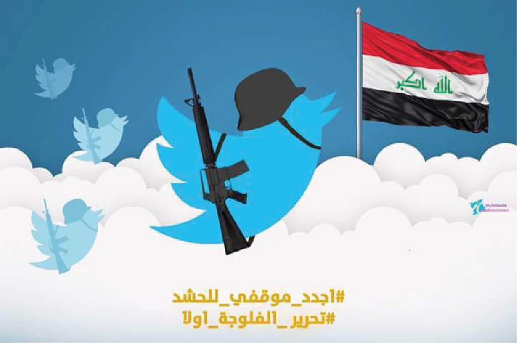 لم يكن للناشطين العراقيين على مواقع التواصل اهتمام كبير بموقع (تويتر) الذي يشغل السعوديون فيه النسبة الأكبر, حيث صنفت السعودية الاولى على مستوى العالم بعدد المغردين على (تويتر) في الأشهر الماضية, لكن بعد ان خاضت قوات الجيش العراقي وفصائل المقاومة الاسلامية والحشد الشعبي المعركة ضد عصابات داعش الاجرامية في الفلوجة وكثرت الهاشتاغات المؤيدة لداعش الاجرامي فيه, التي ينشرها ناشطون داعشيون من السعودية ومن دول أخرى, هاجم العراقيون موقع (تويتر) لتسجل الهاشتاغات والتغريدات العراقية موقع الصدارة, بين جميع المنشورات الأخرى بغضون أيام قليلة, بعد نداءات وجهها ناشطون على (فيس بوك) بضرورة الدخول الى تويتر ونصرة الحشد الشعبي والقوات الأمنية, وسرعان ما سيطر العراقيون على الموقع في الوقت الذي احكمت القوات الأمنية على محيط الفلوجة, مغردين بان “الجهاد على مواقع التواصل لا يقل أهمية عن الجهاد المباشر”.