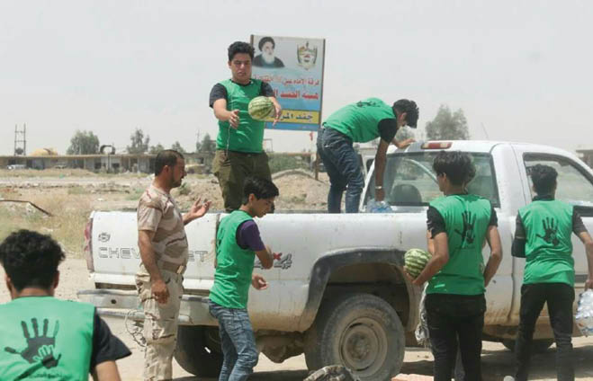اطلقت مجموعة من الشباب حملة “الضمير الحي” لمساعدة فصائل الحشد الشعبي والقوات الأمنية في الخطوط الأمامية, التي تخوض المعارك ضد عصابات داعش الاجرامية, حيث توجهت مجموعة من الشباب محملين بالمواد الغذائية ومستلزمات أخرى الى الخطوط الأمامية, لتقديمها الى القوات المرابطة على سواتر محيط الفلوجة وبالتحديد في خط الصد “قاطع الصقلاوية البو شجل”, وقدموا للقوات الامنية المرابطة ما استطاعوا جمعه من مواد غذائية بالتعاون مع الخيرين, بالاضافة الى مستلزمات أخرى, وأكد الناشطون بان تلك الحملة تأتي كعرفان للجهود التي تبذلها القوات الأمنية وفصائل الحشد الشعبي في الدفاع عن حياض الوطن, ومجابهة عصابات الاجرام والتكفير التي تحاول ان تصنع دولتها على ركام من جثث الأبرياء.