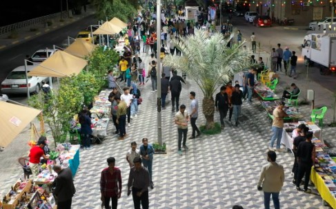 يُعقد تجمع شارع الفراهيدي الثقافي في البصرة أسبوعيا ليلا، للهروب من درجات الحرارة التي بدأت تصل مستويات “جنونية”.