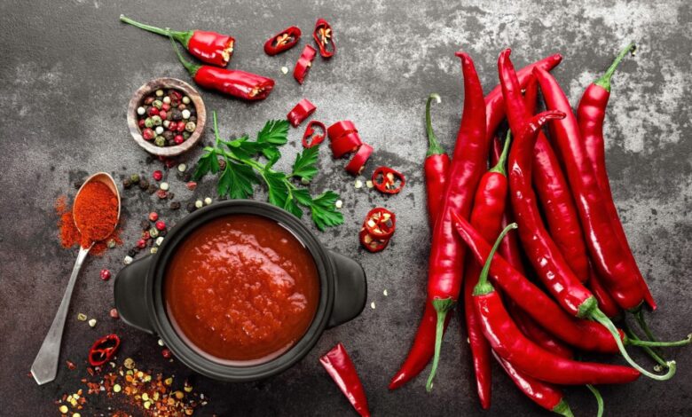 ايضاً الفلفل الحار الذي يمنح حرارة ونكهة مميزة، والذي يقلل من الشهية ويعزز حرق الدهون. اذ توصلت إحدى الدراسات إلى أن تناول الفلفل الحار مع الوجبات الرئيسية يزيد من الشعور بالشبع ويقلل من الرغبة في تناول الطعام، مما يساعد على التحكم في السعرات الحرارية.