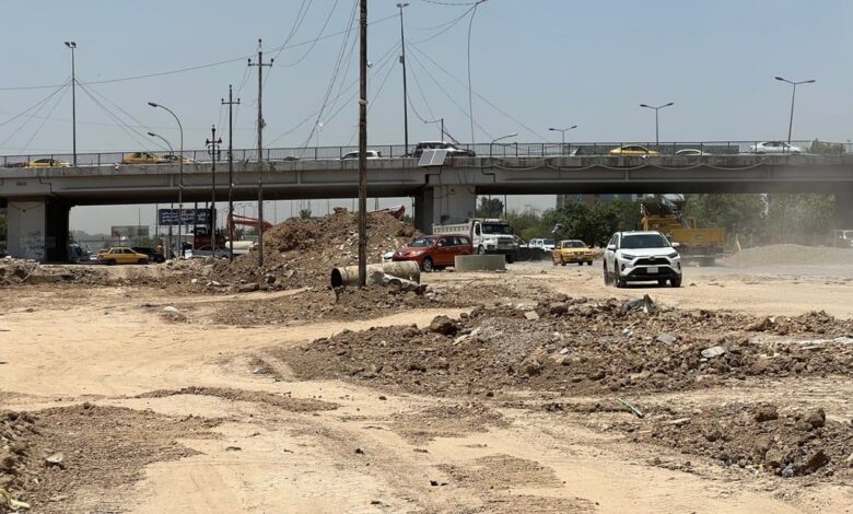 زحامات جسر الأمانة مستمرة بسبب خط المجاري