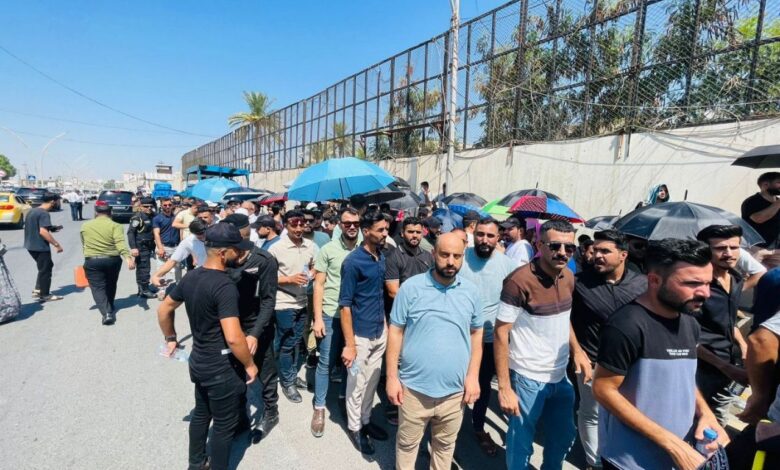 وقال مصدر محلي : ان”العشرات من الخريجين تظاهروا سلمياً أمام مبنى محافظة ديالى في بعقوبة للمطالبة بإطلاق 7000 درجة وظيفية مخصصة للمحافظة، مشيرا إلى أن تأخر تشكيل حكومة ديالى يضر بمصير هذه الدرجات.