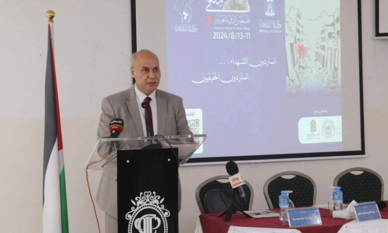 وأضاف: أن “الملتقى يأتي في ظروف استثنائية، فتعقيدات الاحتلال ألقت بظلالها على تنظيم فعالياته، إلا أن العزيمة والإرادة المستمدة من صمود شعبنا وتضحياته، كانت حافزاً لنواصل الطريق نحو تعزيز سرديتنا، حيث يقدم نخبة من الكتاب الفلسطينيين والعرب في هذا الملتقى، شَهاداتهم على ممارسة الكتابة في زمن الإبادة، وذلك في خصوصية منقطعة النظير، تؤسس لمستقبل روائي ينبني على ما يقوله الساردون الحقيقيون، النازفون ألماً في الميدان، في الخيام، في البيوت المهدمة وتحت الركام، مَن فقدوا أطرافهم وأعينهم وقدراتهم على الكَلام… الساردون الشهداء”.