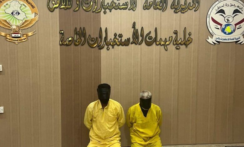 واضافت إن “أحدهما من القيادات الرئيسية والمنسق العام لقواطع ما يسمى ولاية ديالى والآخر مشترك في جريمة سبايكر”، مبينة ان “المتهمين صادره بحقهما مذكراتا قبض وفق احكام المادة (4) من قانون مكافحة الارهاب”.