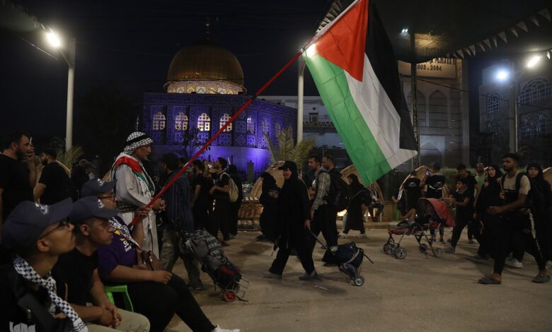موكب فلسطيني بين كربلاء والنجف للتعريف بـ”الجرائم” التي تطال غزة