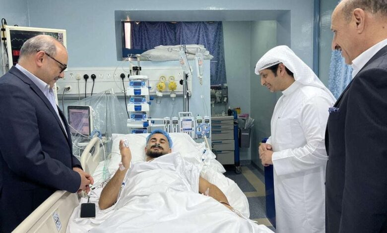 وأضاف أن “أيمن حسين من المؤمل أن يغادر المستشفى غدا الإثنين، إذ سيتواجد في وفد المنتخب بطلب شخصي منه من أجل البقاء بالقرب من زملائه مع الحفاظ على التعليمات التي سيحددها الكادر الطبي المشرف على وضعه“.