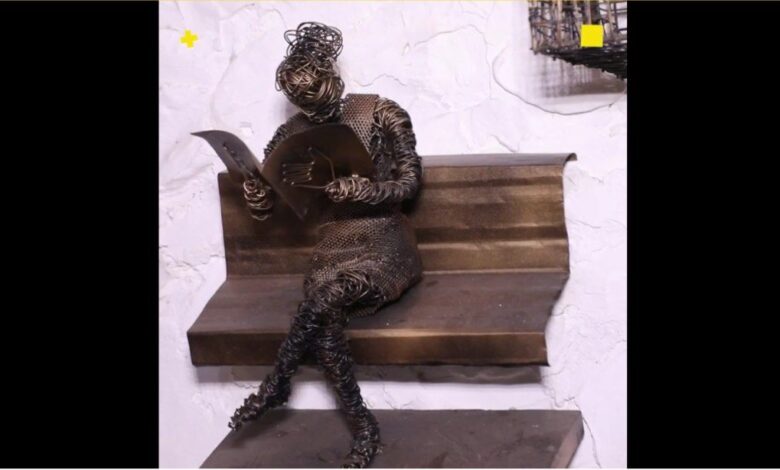 محمد الشمري يصنع مجسمات صغيرة وكبيرة من الأسلاك النحاسية والحديدية