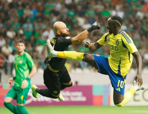 وعاد النصر لمحاولاته من اجل تسجيل هدف التقدم مرة ثانية واستطاع تناقل اكثر من كرة قرب منطقة القيثارة أضاع من احداها ساديو ماني فرصة محققة بعد ان سدد الكرة بيساره الى خارج المرمى وهو بمواجهة الحارس احمد باسل بينما شهدت الدقائق الخمس الأخيرة من هذا الشوط احتساب الحكم الكويتي احمد العلي ضربة جزاء لصالح الشرطة بعد تدخل المدافع الفرنسي على المهاجم احمد داود ولكن الحكم عاد والغى قراره واحتساب ضربة حرة مباشرة بعد العودة الى تقنية الفار، ومن ثم أضاف سبع دقائق كوقت بدل ضائع ومن بعدها اطلق صافرته اعلانا بانتهاء الشوط الأول.