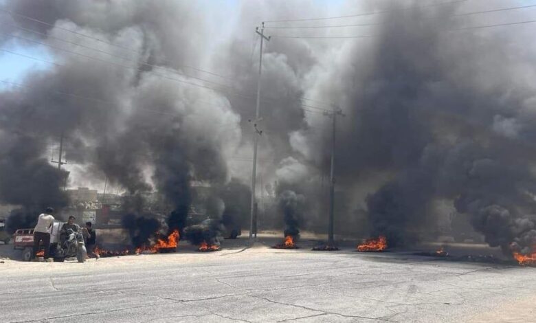 الحبيلية تحرق الإطارات بسبب نقص الخدمات