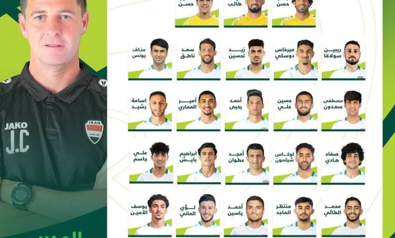 ومصطفى سعدون، وميرخاس دوسكي، وأحمد يحيى، وأمير العماري، وإبراهيم بايش، وصفاء هادي، ولوكاس شليمون، وأمجد عطوان، وأسامة رشيد، ومحمد الطائي، ومنتظر ماجد، ويوسف الأمين، ولؤي العاني لخط الوسط.