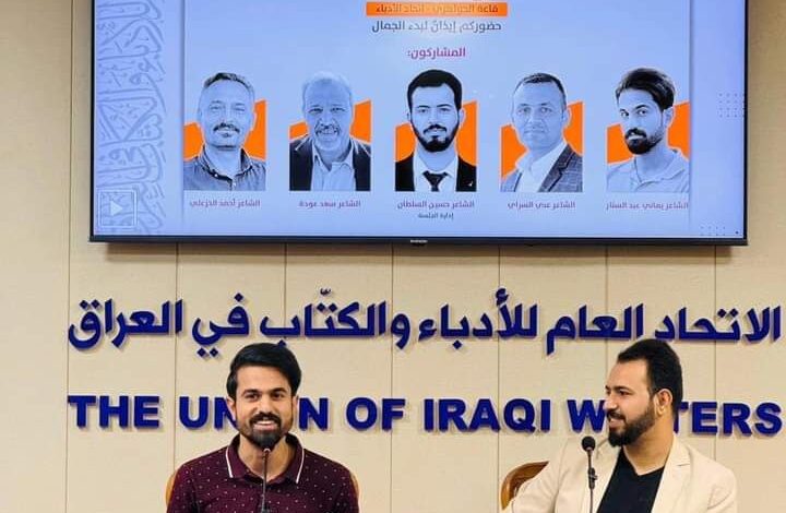 ضيّف نادي الشعر في الاتحاد العام للأدباء والكتاب في العراق، اليوم السبت، نخبة من الشعراء في جلسة قراءات سلطت الضوء على تجربتهم وقصائدهم الإبداعية،والتي تضمنت قراءات شعرية عن فلسطين ولبنان وسط حضور نخبة من أدباء الوطن.