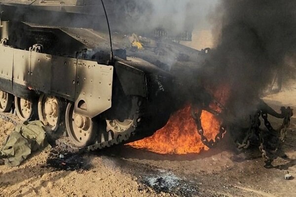 اشتعلت النيران بدبابة صهيونية نوع “ميركافا”، اليوم الأربعاء، بعد استهدافها من قبل أبناء المقاومة الإسلامية اللبنانية.