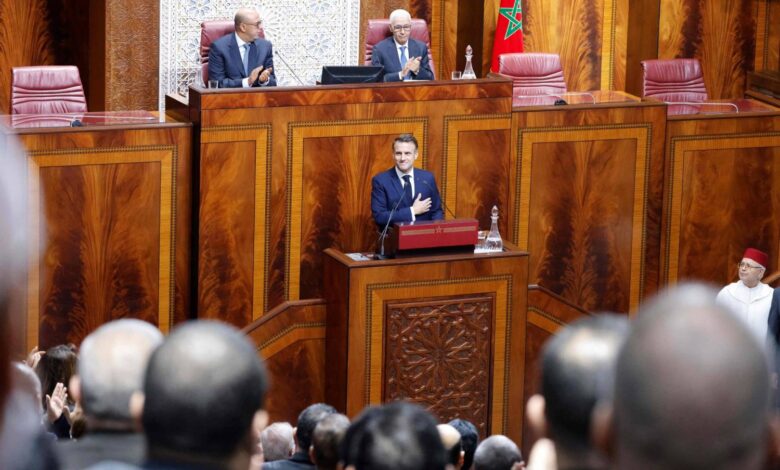 لكن ما يثير العجب ليس خطاب ماكرون، وإنما موقف أعضاء البرلمان المغربي الذين اختاروا أغلبية ومعارضة، التصفيق بحرارة لرئيس “ضعيف” يحركه النتنـياهو كيفما يشاء، رئيس منبوذ لدى غالبية الفرنسيين، فبدل أن يعترضوا أو -على الأقل ينتفض بعضهم- ليصحح التوصيف الخاطئ والمنحاز، على إعتبار أن الجالسين أمامه من المفروض أنهم تعبير عن الشعب المغربي الذي إنتخبهم في انتخابات 8 سمتنبر الشهيرة، خاصة وأن تصريحات ماكرون تتضمن إساءة للمقاومة الفلسطينية التي تدافع عن وطنها وشعبها الخاضع للإحتلال، وإساءة لمشاعر ملايين المغاربة الذين خرجوا منذ انطلاق الطوفان وشعارهم “كلنا فلسطينيون “…