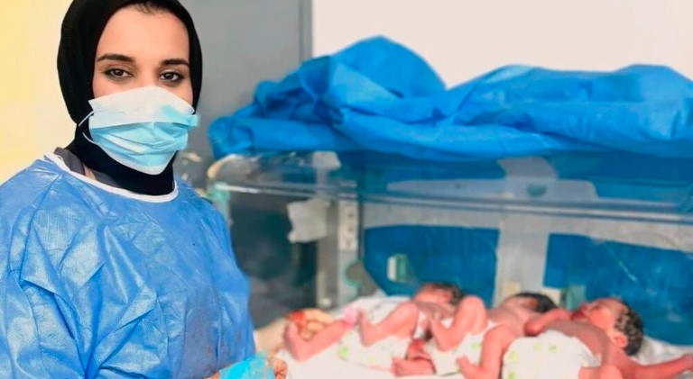 وأضافت: “تمت متابعة الحالة والسيطرة على الضغط والخثرة والرقود ومتابعة الحالة لحين دخولها في الشهر الثامن من الحمل (الأسبوع 33) من الحمل بعدها تم تحويلها الى صالة العمليات لتضع ثلاثة توائم ذكور وهم بصحة جيدة”.