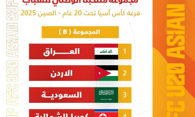 منتخب الشباب يواجه الأردن والسعودية وكوريا الشمالية بنهائيات كأس آسيا