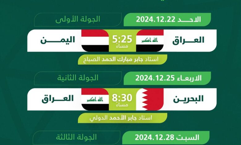 البطولة السادسة والعشرون تضع العراق بمواجهتين قويتين أمام السعودية والبحرين