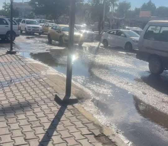 تكسر أحد أنابيب النقل يقطع الماء عن حي الحسين