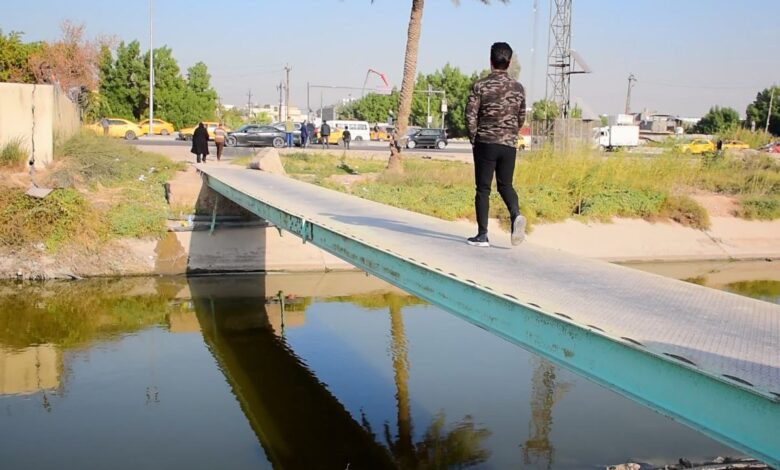 وقال المواطن مصطفى هادي: إن “حالة المعبر المتهالك فوق مبزل الماء على “سريع قناة الجيش”، تشكل قلقا بين المارة الذين يستخدمونه على مدار الساعة، ما تسبب بسقوط أشخاص، وجعل كبار السن يعانون في المرور ضمن موقع مهم يقطع نحو 20 كم بين أطراف بغداد الشرقية”.