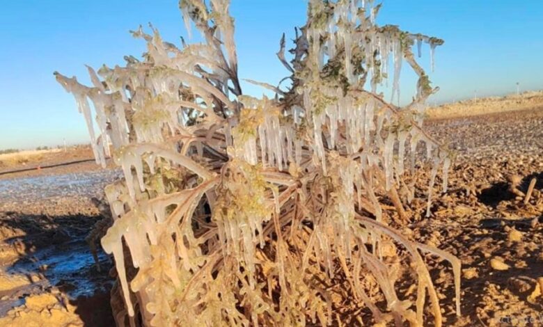 وأدى انخفاض درجات الحرارة، صباح يوم أمس الاثنين، إلى انجماد في المرشات ومساحات واسعة من الأراضي الزراعية في منطقة الزركة شمال الكوفة، والمزروعات في الرحبة ببادية النجف، إذ يشهد عموم العراق معدلات حرارة منخفضة.