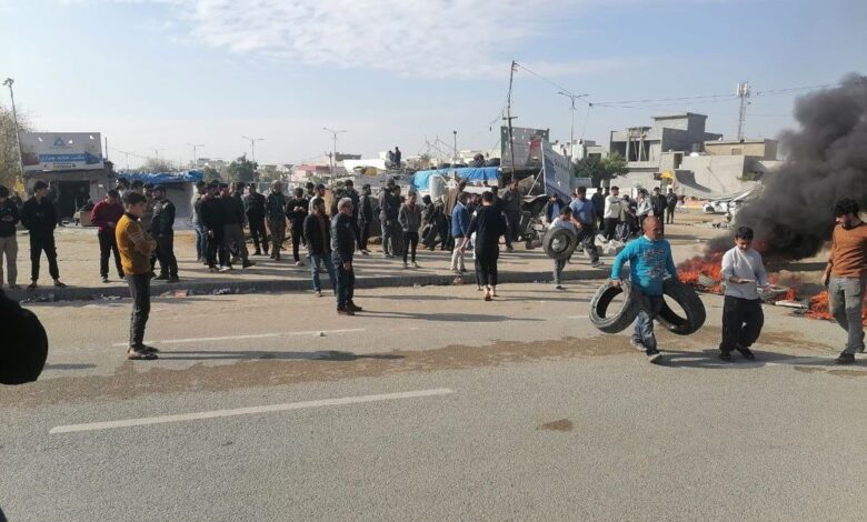 كسبة كركوك يغلقون طريق الشورجة للمطالبة بمكان بديل