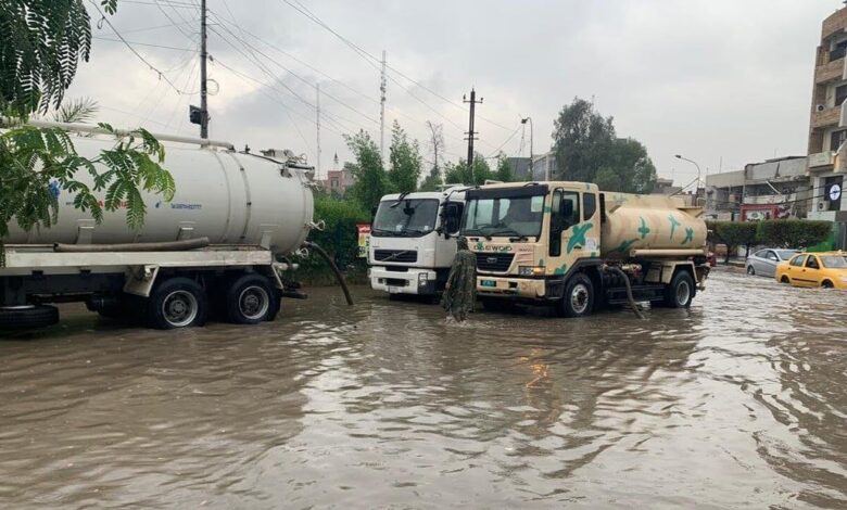 عمليات بغداد تدعم الأمانة في مجابهة الأمطار وسحب المياه الثقيلة