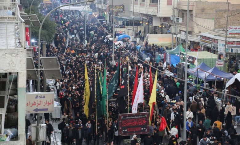 على مدِّ النظر ومن كل حدب وصوب، تتوجه القلوب المؤمنة نحو ضريح الجوادين لإحياء ذكرى استشهاد سجين بغداد الامام موسى بن جعفر عليه السلام، فيما تنتشر القوات الأمنية ومواكب العزاء في الطرقات المؤدية الى مدينة الكاظمية المقدسة لتأمين الزيارة المباركة وسط دعوات لنصرة المقاومة وإخراج الاحتلال من البلاد.