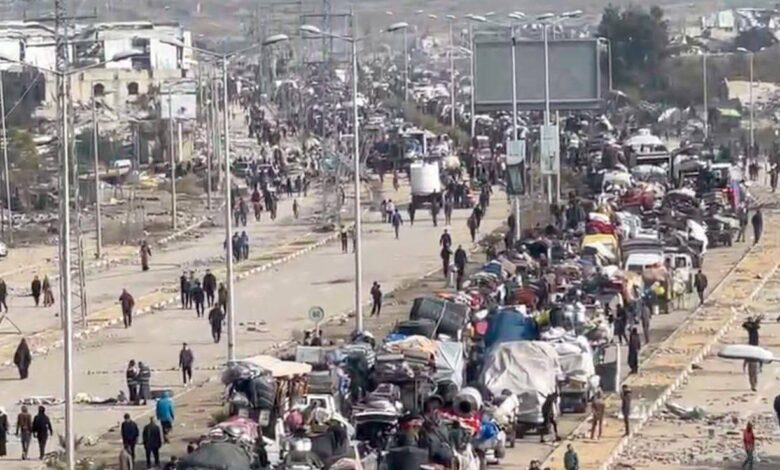واظهر صور تداولها ناشطون عودة النازحين الى شمال قطاع غزة، وهم يرفعون الشعارات التي تمجد بالمقاومة وتنكل بالاحتلال.