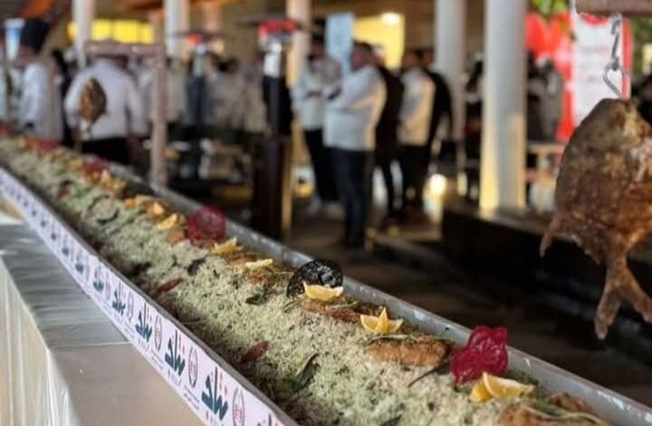 يُبدع طهاة عراقيون بفنون الطبخ خلال مشاركات في دور الايتام والمسنين، اذ شكلت أكلة بصرية بطول قياسي بسوق نتاج بغداد لوحة مميزة.