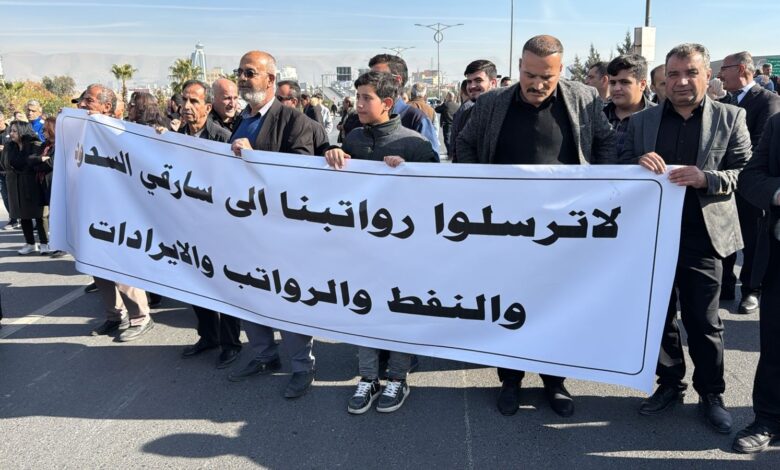 وحمّل المئات من المتظاهرين حكومة الإقليم، مسؤولية تأخر رواتبهم وسرقتها، مؤكدين ان احتجاجاتهم لن تنتهي حتى تحقيق مطالبهم، مشيرين الى ان عمليات القمع وأساليب الترهيب التي تستخدمها أربيل لن توقف الزحف نحو أربيل.