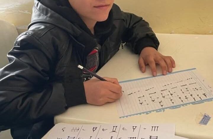 في قضاء البعاج، يُدرب علي طابور هليل، مدرس الاجتماعيات، 30 طالبا على الكتابة المسمارية كل سنة، عبر مشروع تعليمي يستهدف طلاب المرحلة المتوسطة.