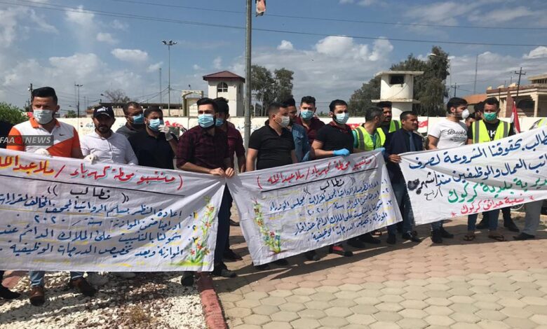 نظم عمال النظافة المتعاقدون مع الشركات الأهلية في كركوك،تظاهرة لهم احتجاجًا على تدني الأجور التي يتقاضونها، فيما أوضحت مديرية البلدية أن مسؤولية الأجور تعود إلى الشركات المتعاقدة.