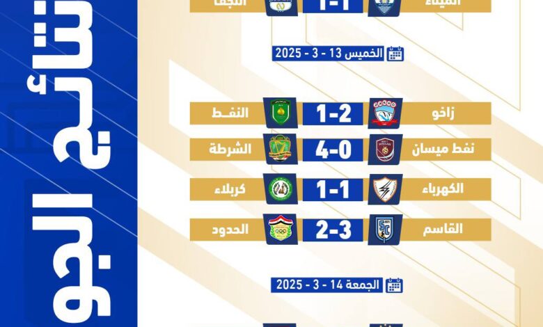 واستطاع الطلبة الاستمرار بتحقيق النتائج الإيجابية، وذلك بعد ان تجاوز عقبة نوروز بثلاثية، واقترب من مربع الكبار حيث تفصله نقطة واحدة عن الجوية صاحب المركز الرابع، فيما عاد نادي القاسم لسكة الانتصارات بعد الخسارة أمام النجف في الجولة الماضية، واستطاع الانتصار على الحدود متمسكاً بالمركز السادس، من جانبه، استمر نادي الكهرباء بسلسلة التعادلات، حيث تعادل للمرة الثانية على التوالي، وهذه المرة جاءت أمام كربلاء.