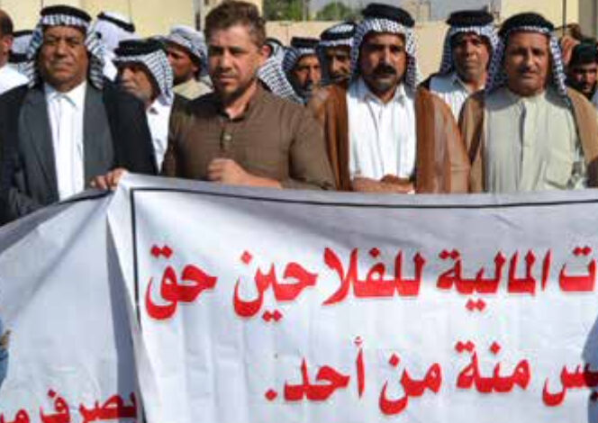 وقال المصدر :إن” مئات المزارعين من محافظات الفرات الأوسط، ، تظاهروا امام مبنى دائرة الزراعة بمحافظة الديوانية، وقطعوا الطريق الرئيس احتجاجًا على تأخر صرف مستحقاتهم وتعويضاتهم لكن قوة امنية من قيادة شرطة الديوانية قامت بانهاء اعتصامهم “.
