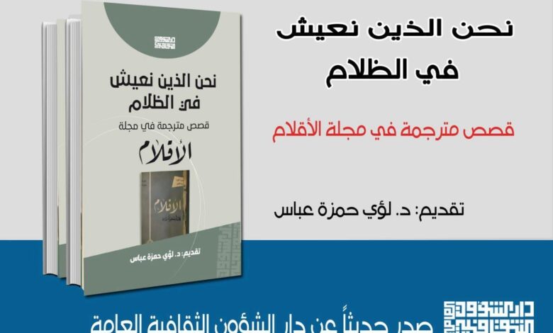 صدر عن دار الشؤون الثقافية العامة التابعة لوزارة الثقافة والسياحة والآثار وضمن مبادرة رئيس الوزراء لدعم طباعة الكتاب وعن سلسلة (قصص الترجمة) كتاب (نحن الذين نعيش في الظلام) الذي يحتوي على 49 قصة مترجمة في مجلة الأقلام.