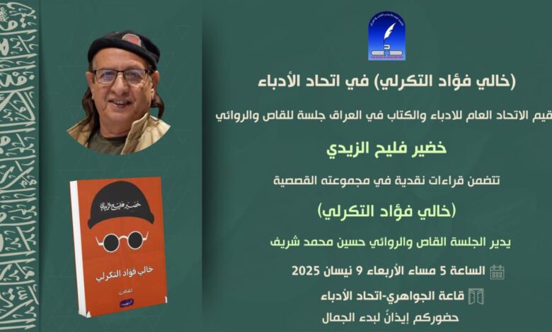 يقيم الاتحاد العام للأدباء والكتاب في العراق، بعد غد الأربعاء، جلسة للقاص والروائي خضير فليح الزيدي تتضمن، قراءات نقدية في مجموعته القصصية “خالي فؤاد التكرلي” وهي الاصدار الأخير لهذا الكاتب المبدع والمستمر في الكتابة الروائية والقصصية والتي تتحدث في معظمها عن غرائبية الواقع العراقي الذي يعيشه العراق بعد الاحتلال الأمريكي.