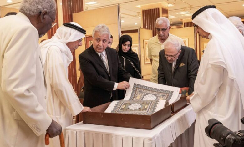 ويعد هذا المعرض واحداً من المعارض المتميزة التي تنظمها مؤسسة العويس الثقافية التي تجمع بين الخط العربي والزخارف الشرقية التي نرحل معها إلى عالم من الروعة يمزج بين التصاميم الهندسية والتقنية المبتكرة لأكثر من 70 لوحة تتضمنها أروقة مؤسسة سلطان بن علي العويس الثقافية، وفيها مزج بين ما هو تقليدي وما هو معاصر.