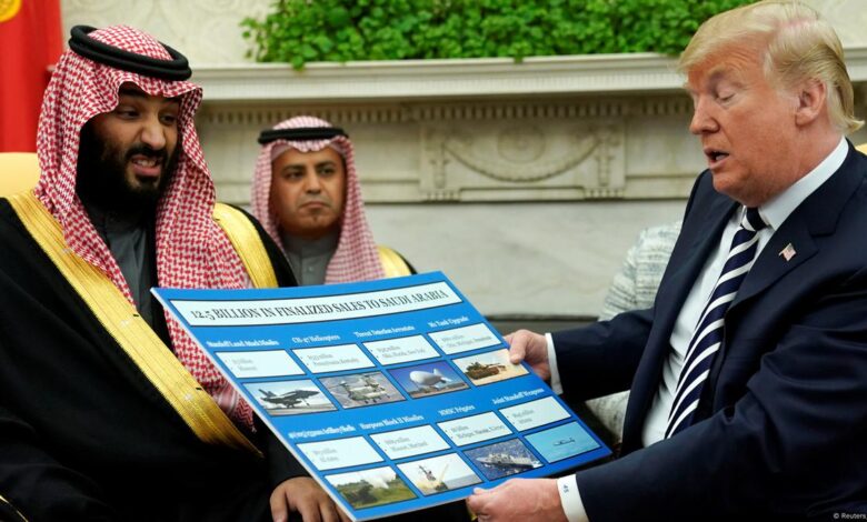 وأبرمت الولايات المتحدة أكبر صفقة مبيعات أسلحة مع السعودية بقيمة 350 مليار دولار على مدار 10 سنوات، وهي الصفقة الأضخم على الإطلاق في تاريخ الولايات المتحدة. وقال وزير الخارجية الأمريكي ريكس تيلرسون إنها تستهدف مقاومة النفوذ الإيراني «الشرير».