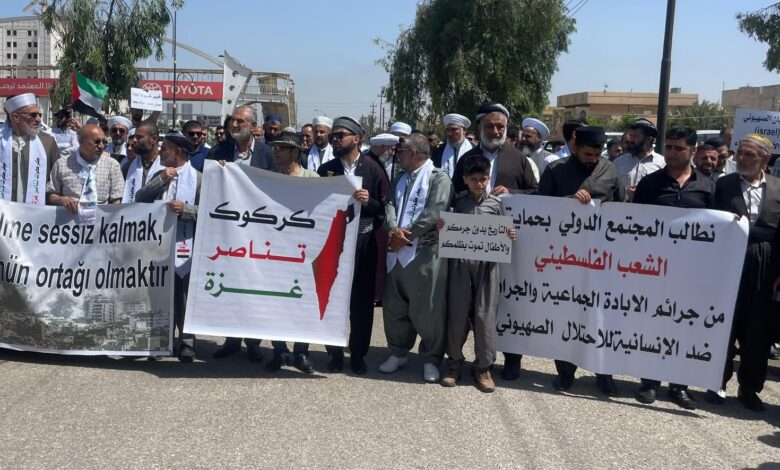وشهدت محافظة كركوك، تظاهرة جماهيرية شارك فيها العشرات من المواطنين بمختلف انتماءاتهم القومية والدينية، احتجاجاً على العدوان الصهيوني المستمر على قطاع غزة.