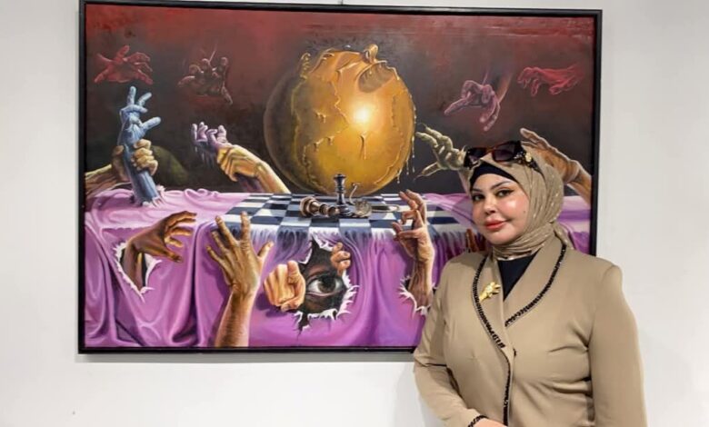التشكيلية بيداء الشيخ تهدي لوحة قلب الإمام الحسين “ع” الى العتبة الحسينية