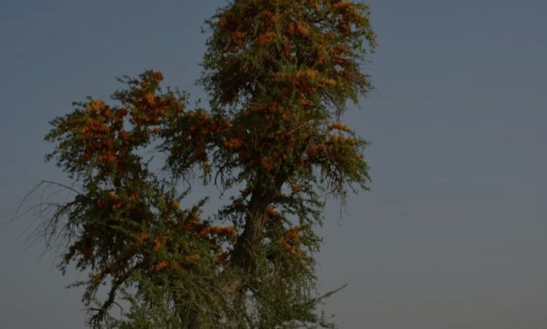 أشجار يبلغ ارتفاعها 5 أمتار، وأزهارها صُفر كأسية الشكل، تحمل قطرة سائلة حلوة المذاق أقرب لطعم العسل، تبدأ بالظهور أواخر نيسان في مدينة بلد بمحافظة صلاح الدين، وفقاً للتأريخ القديم وما يزال متداولاً، فإن جيش الإمام علي “عليه السلام” ربط خيوله على أوتاد “أشجار العسل” التي مازالت شاخصة وبحالة جيدة في منطقة سيد غريب قرب “بلد”، وتتحدث القصة عن أن خيول أنصار الإمام علي “ع” استقرت قرب تلك الأشجار الزاهية بأزهارها ذات المذاق الحلو، خلال معركة النهروان ضد الخوارج، فيما رابطت خيول الأعداء على بعد 200 متر، قرب شتلات الحنظل المر، واليوم يزور كثيرون هذه الأشجار التي بقي منها أكثر من 20 شجرة، طلباً للتبرك بهذا المكان الذي يعتقدون أنه شهد حدثاً عظيماً، ويذكّر الباحث والمختص بشؤون الآثار، حيدر عيدان، أن هذه الأشجار يعود تأريخها بالفعل إلى معركة النهروان (38 للهجرة)، ووفق بحث أجرته جامعة Punjabi الهندية ونشر عام 2015، فإن شجيرات العسل أو الفرفار واسمها العلمي Tecomella undulata، هي نادرة ومهددة بالانقراض، وتنمو في المناطق القاحلة من الهند وجنوب باكستان وشبه الجزيرة العربية، وتستخدم “تقليدياً” بالهند في علاج الأكزيما والصداع النصفي، وتستخدم بعض القبائل لحاءها للإجهاض وعلاج البواسير وعلاج الحساسية.