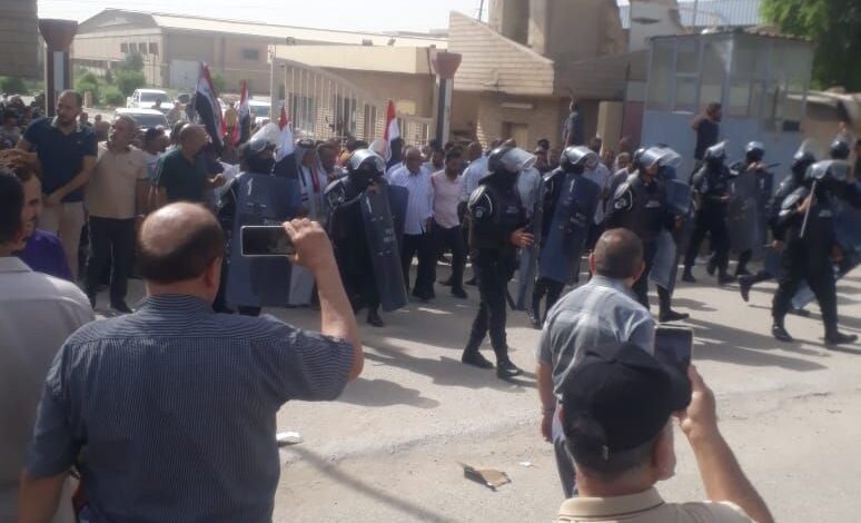 تظاهر العشرات من موظفي معمل نسيج الحلة، اليوم الثلاثاء، أمام مبنى المعمل، للمطالبة برفع التسكين عن رواتبهم.. وهدد المتظاهرون بالاعتصام في حال لم تتم الاستجابة لمطالبهم.