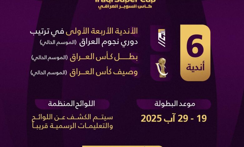 وأوضح أن “البطولة ستقام بعد انتهاء كل موسم كروي لبطولتي دوري النجوم وكأس العراق، وسيتم وضع آلية المسابقة في وقت لاحق.”